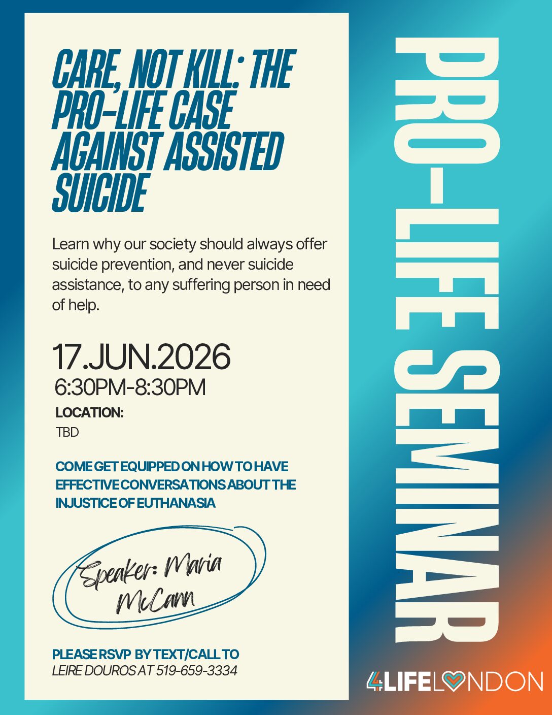 Please RSVP by text/call Leire at 519-659-3334
